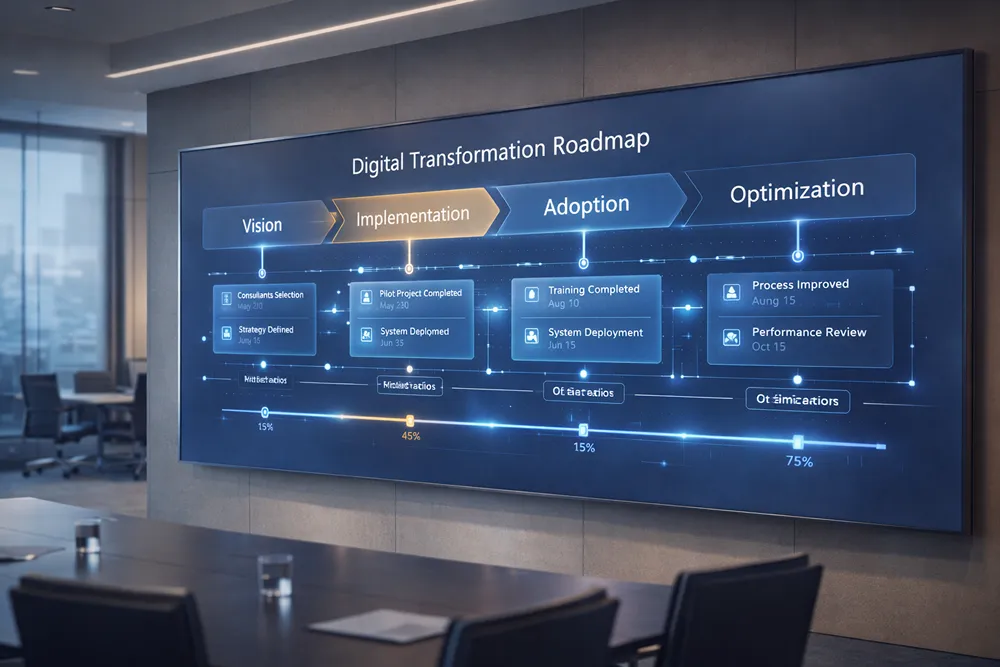 - The digital transformation journey should progress through manageable phases with clear milestones, allowing organizations to demonstrate quick wins while building toward long-term strategic objectives